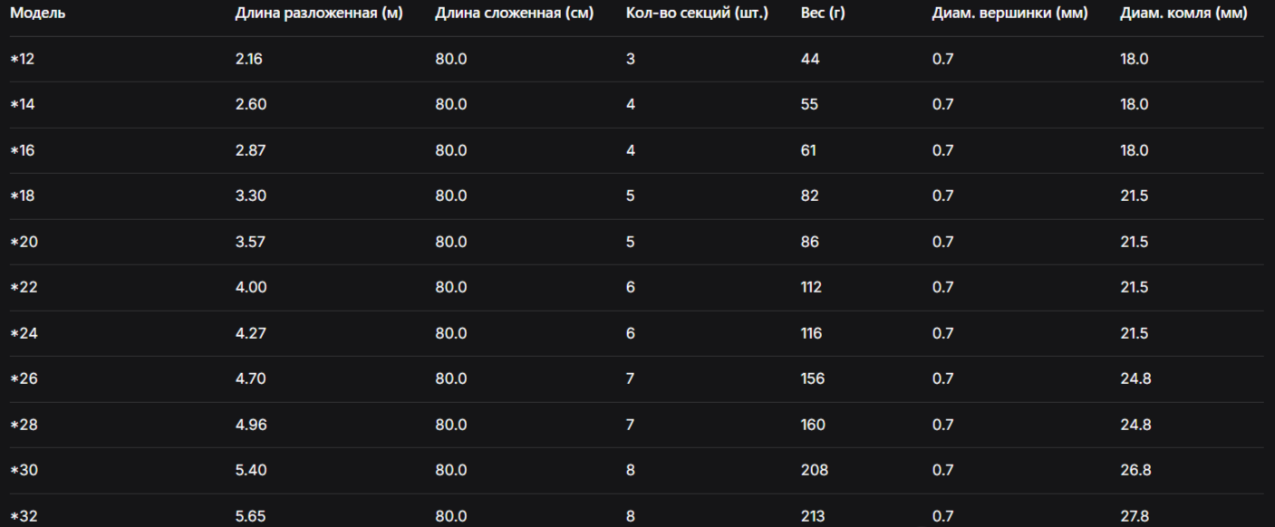 Эта удочка создана исключительно для ловли крупной рыбы. От кончика до рукоятки удочка имеет 100% конусную конструкцию, сделана методом Diaflex, который обеспечивает большую прочность, что делает данную удочку идеальной для использования как в пресной, так и в морской воде. Отлично подойдет для ловли крупного карася и карпа. Обладает хорошим точным забросом, большой мощностью. Примерный ориентир строя - 19 - 28. Длина в собранном виде 80,0см. Поставляется в фирменном чехле, предусматривающим возможность размещения оснастки. Высочайшее качество. Сделано в Корее.